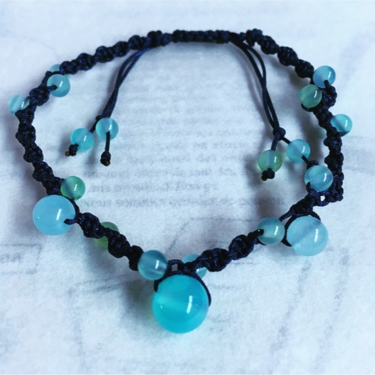 シーブルーカルセドニーは人工的に染色された石ですので直射日光により退色が見られる場合があります。