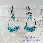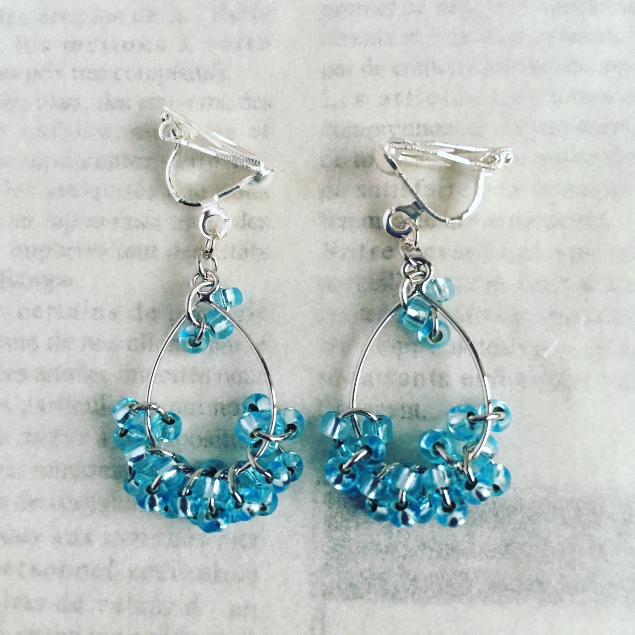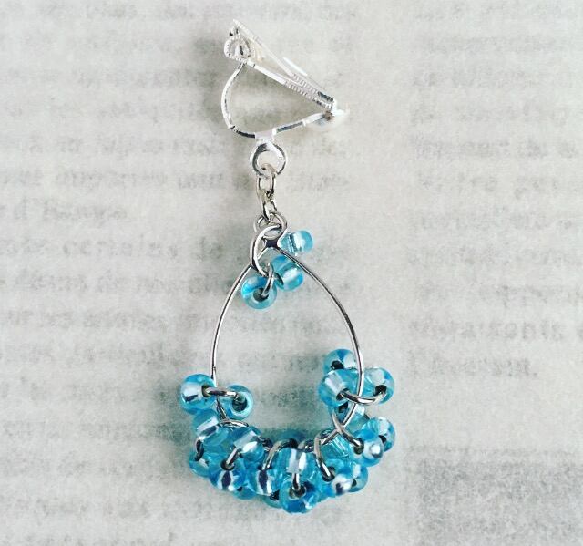 水色 バネ式イヤリング ビーズ フリル シルバーカラー