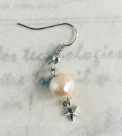 キスカのコットンパールとシルバーカラーの星を繋げたピアスです。