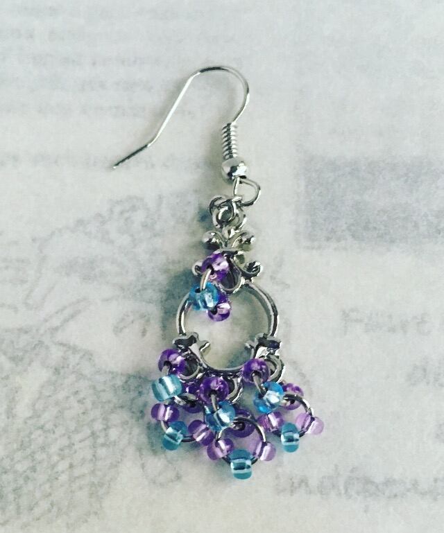 水色と紫のミックス。ボヘミアンビーズのアンティーク風フリル