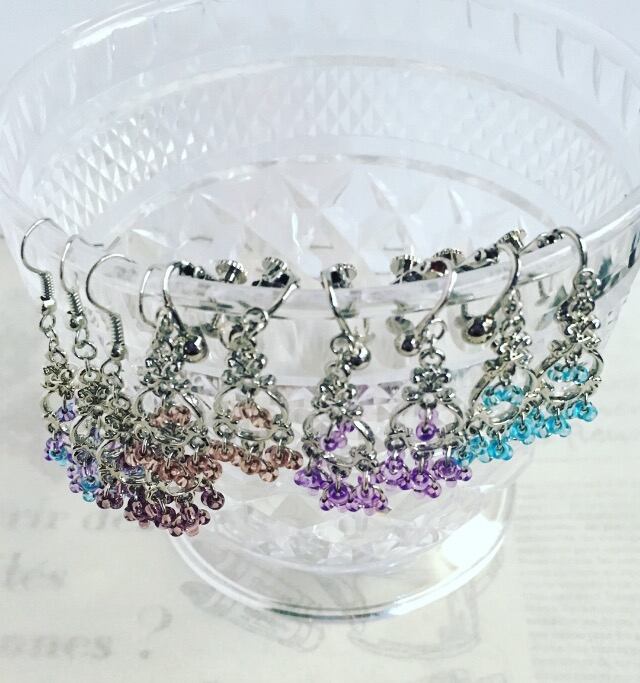 ビーズがシャラリと揺れてアンティークレースのような可愛らしいピアスです。
