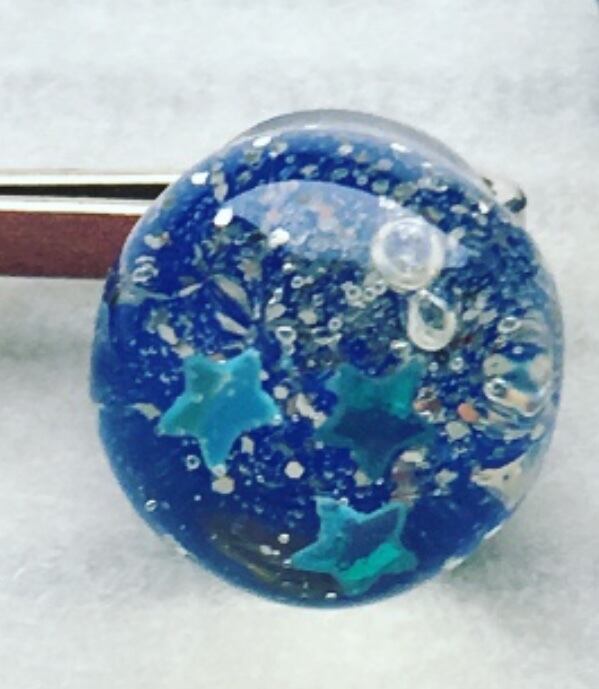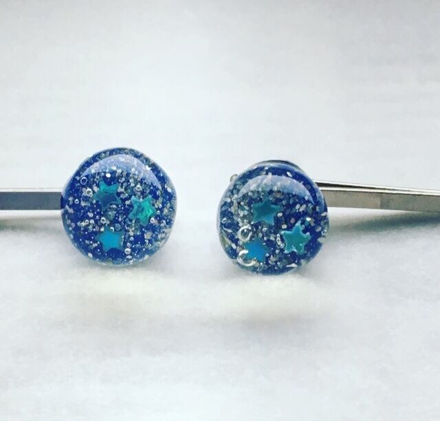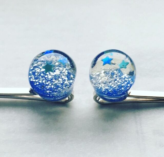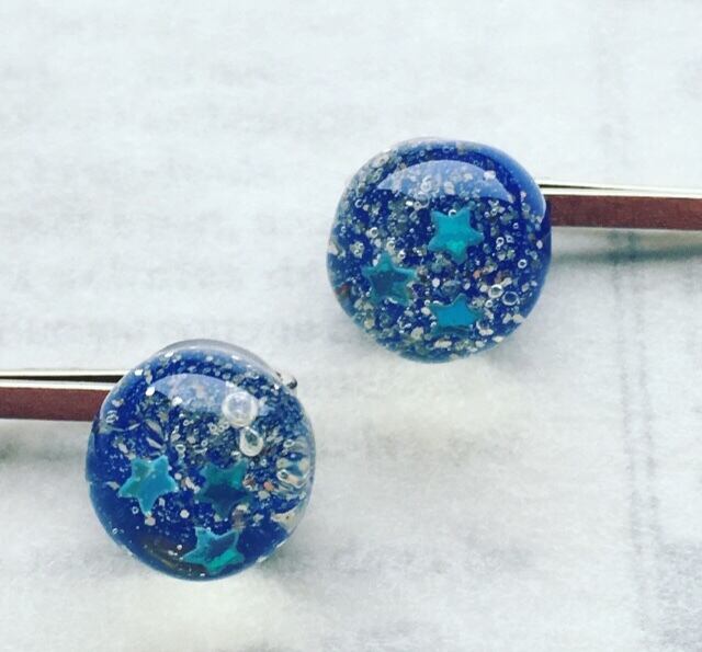 ブルー星とシルバーラメのレジンヘアピン〜ブルーレジンの中にブルー星とシルバーラメを閉じ込めた髪飾り、ヘアピンです。